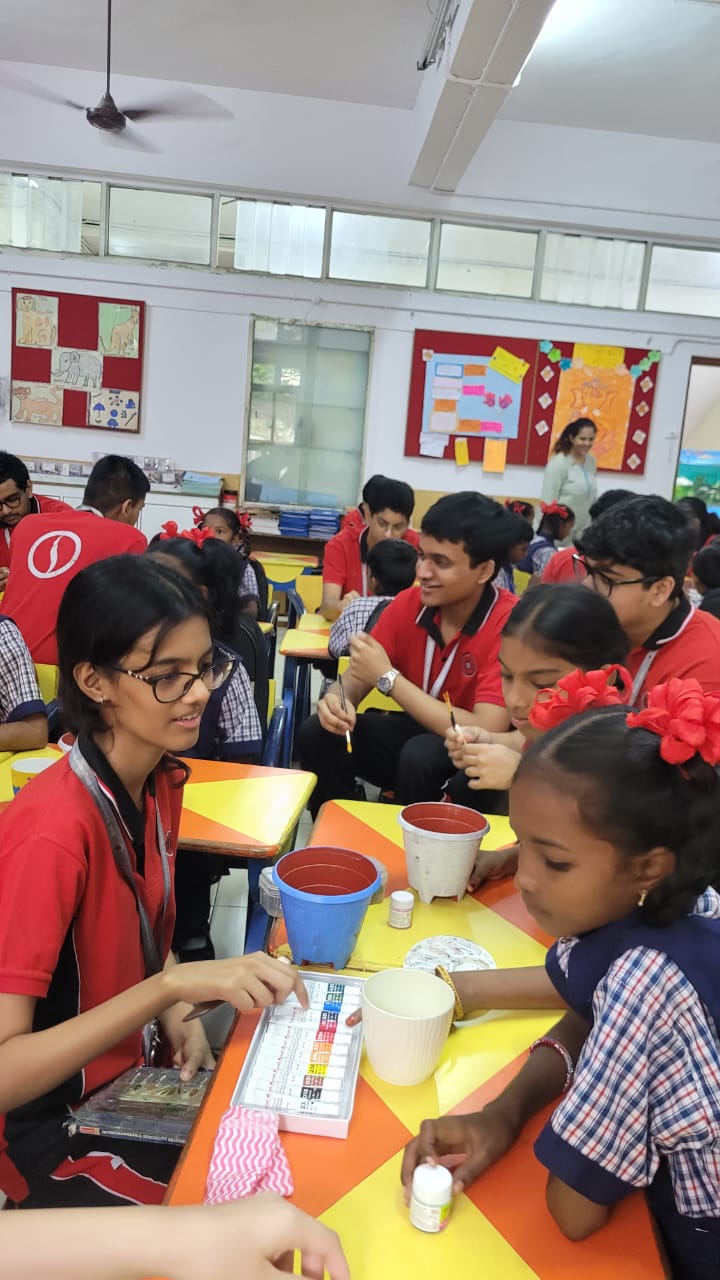 Our DP2 students of SinghaniaIBDP engaged in a meaningful CAS activity with the children of SVPT school Yeoor as a part of our schools outreach program, blending creativity and sustainability. They guided the children in painting vibrant artworks and planting saplings, fostering both artistic expression and environmental awareness. The day concluded with smiles all around, as everyone experienced the joy of learning, creating, and working together.